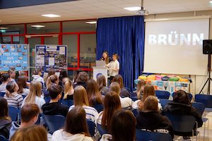 Am 2. Dezember 2024 starteten wir – begleitet von Herrn Minarik, Frau Weihrich und Frau Pucher – voller Vorfreude unsere Reise zu unseren Projektpartnern nach Brünn, in die zweitgrößte Stadt Tschechiens. Von der Schule aus ging es mit dem Bus los und am Nachmittag trafen wir die Schülerinnen und Schüler des Brünner Gymnasiums. Gemeinsam erkundeten wir die Stadt bei einem Spaziergang, während sie uns spannende Geschichten über Brünn erzählten.